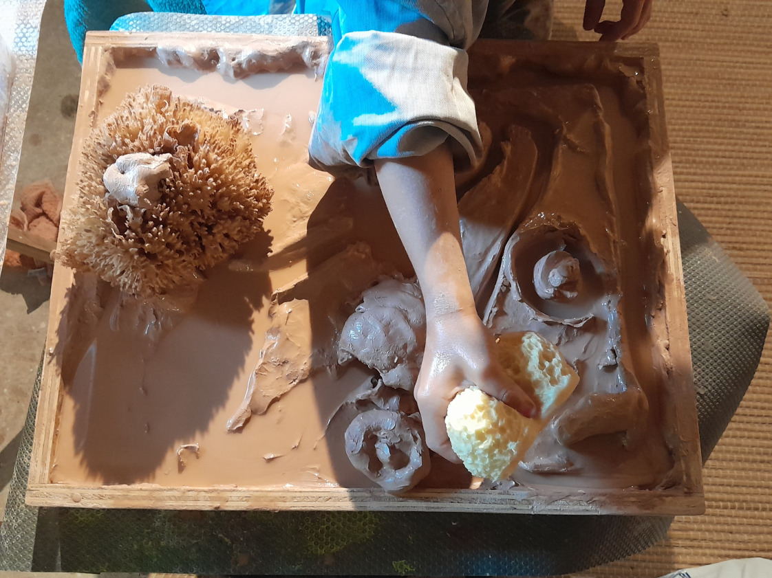Bei der Tätigkeit am Tonfeld geht es nicht darum, etwas zu kreieren oder zu erschaffen, der schöpferische Prozess ist keinerlei Zweckgebundenheit unterworfen. Vielmehr kann das Kind über das haptische In-Beziehung-Treten zum Tonfeld eigene innere Themen bearbeiten und individuelle Lösungen für diese entwickeln. Auf diese Weise tritt das Kind in engen Kontakt zu sich selbst und erfährt Selbstwirksamkeit bei der Lösung persönlicher Entwicklungsaufgaben.
