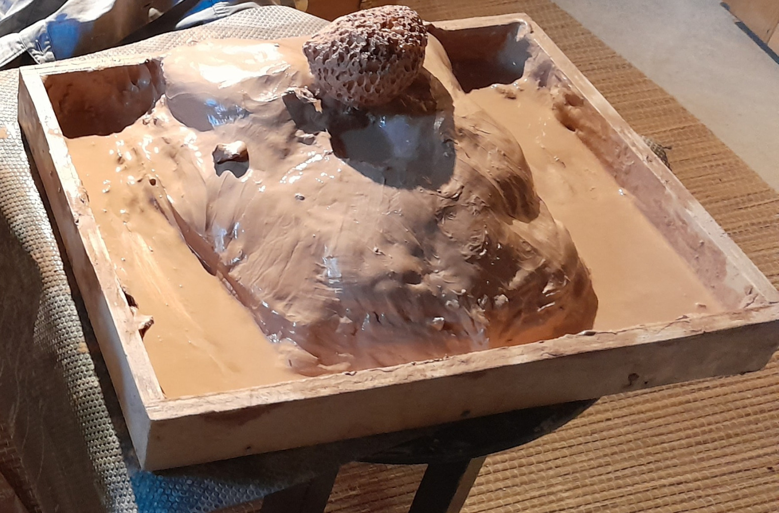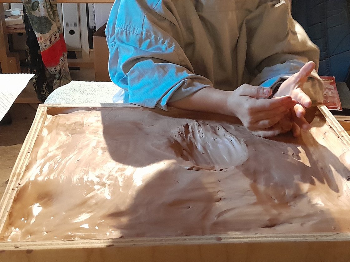 Das Tonfeld ist ein flacher Holzkasten, der bis zum Rand mit Tonerde gefüllt ist und das am Tonfeld arbeitende Kind zum Tasten und Modellieren einlädt. Daneben steht ein Gefäß mit Wasser, das nach Wunsch in die Arbeit einbezogen werden kann.